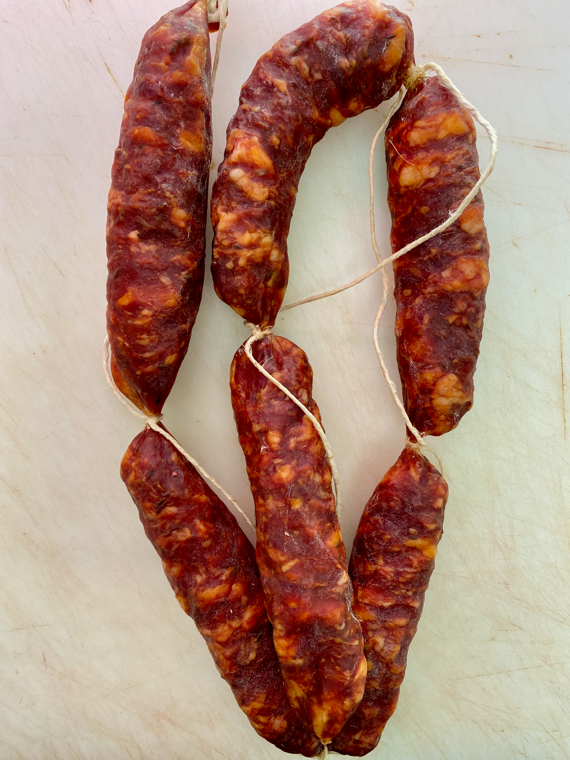 La nostra salsiccia, salume tipico della Basilicata, ottenuta da carne scelta di suino (prosciutto, spalla e filetto) con l'aggiunta di sale e finocchietto. In fase di preparazione viene a formarsi una successione di capi di salsiccia, da ciò prende il nome di salsiccia catenella.